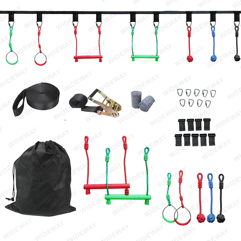 • Terrain de cours d'obstacles Ninja Warrior pour les enfants avec une slackline de 15 m avec cliquet pour un plaisir et une formation sans fin.