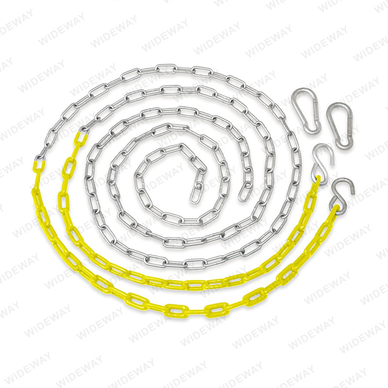 Notre équipe expérimentée se consacre à la fabrication de produits de haute qualité en utilisant des technologies, des matériaux et des processus de fabrication de pointe. Nous veillons également à ce que la chaîne de balançoire en vinyle respecte ou dépasse toutes les normes de sécurité en termes de capacité de poids, de durabilité et de sécurité des enfants.